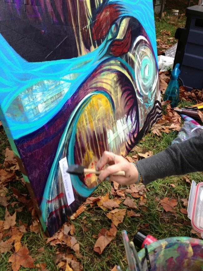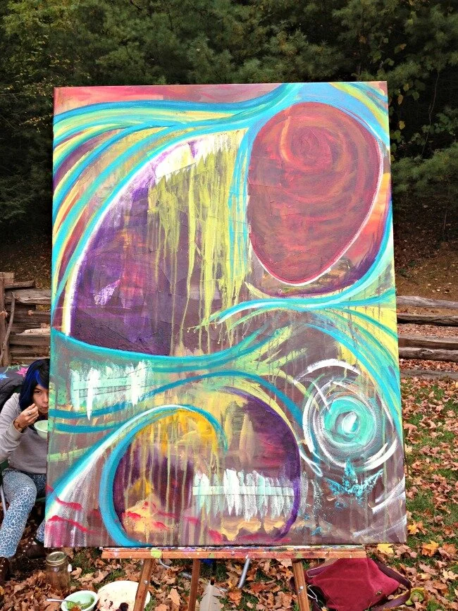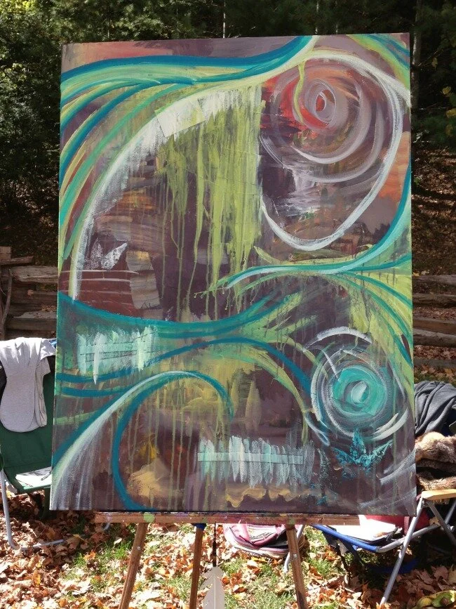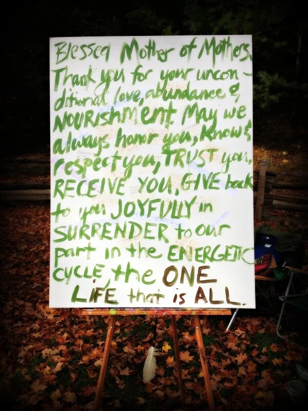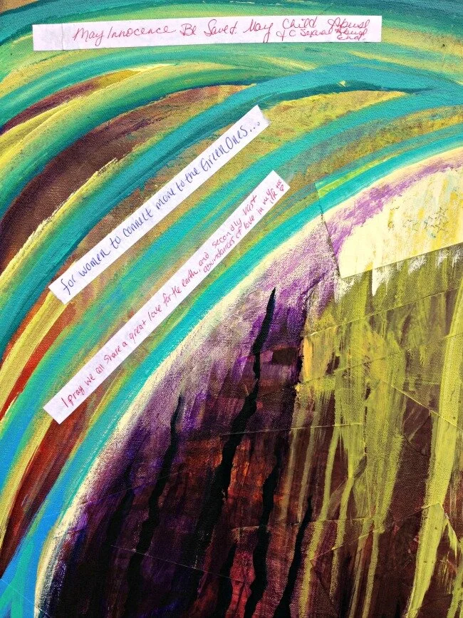 At the SEWW Herbalism Conference, I invited women to leave healing prayers, gratitudes, intentions - whatever was in their heart - on a little slip of paper to be laid onto the canvas for a spontaneous painting in honor of our relationship with the Earth.