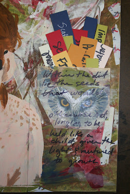 I've been participating in a great on-line art journaling workshop called 21 secrets, just to get my gears oiled again and juices flowing and some of this... mucky shit... and wonderful fertile soil... out of me... and out of the way... laying the path a bit, leading the way for my next steps. And clearing my head, you might say, as I dive back into making art that's authentic and closer to Source, regardless of outcome.